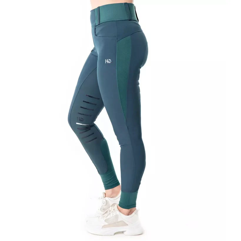 Pantalon Horseware Ireland Meryl pour femmes. Fabriqué dans un matériel élastique et respirant qui protège des rayons UV. Ligne de silicone à l’intérieur des cuisses pour une meilleure adhérence. Taille haute confortable. Sans fermeture éclaire ni bouton à l’avant. Couleur Galactic Teal.